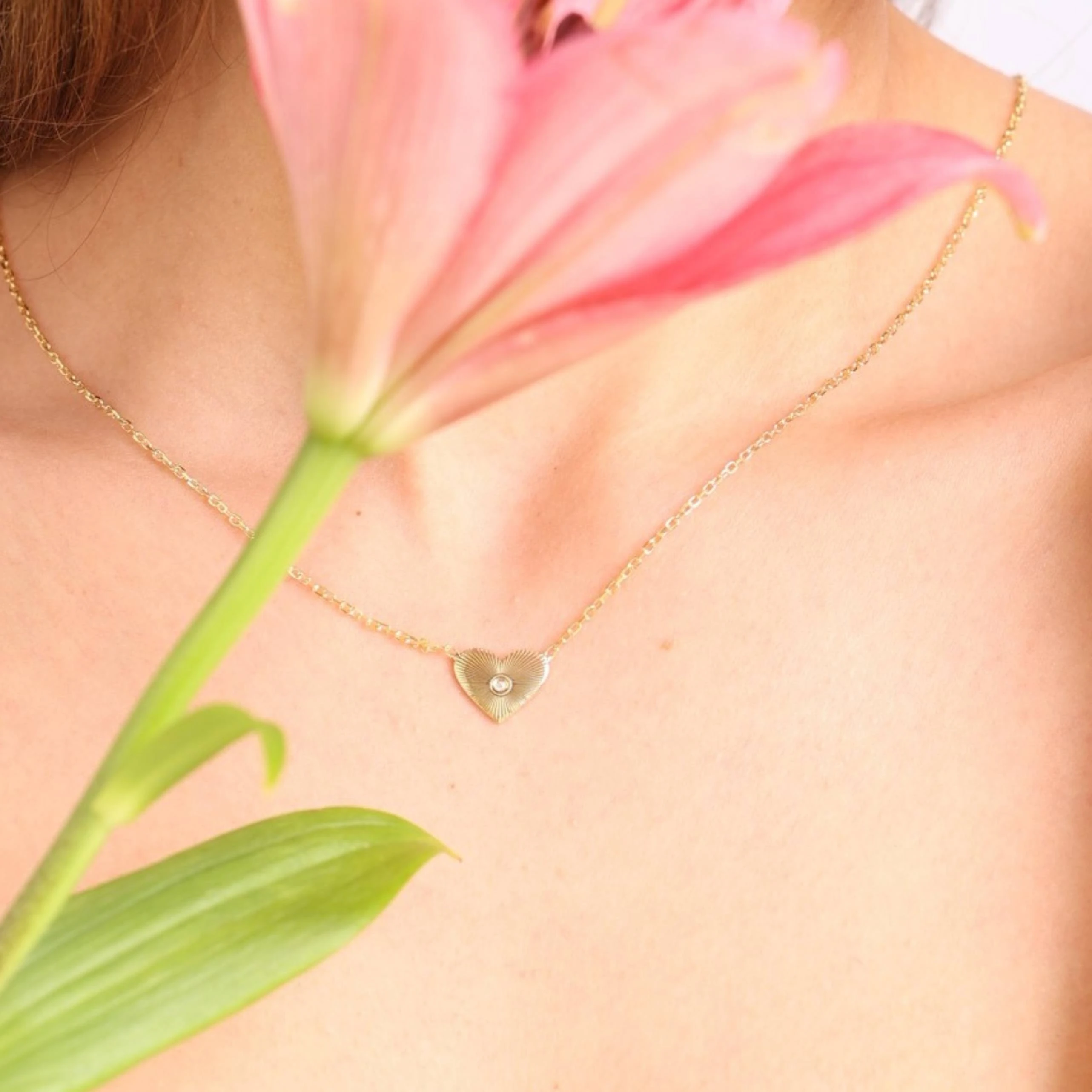 Kalem İşçilikli Tek Taşlı Kalp Kolye